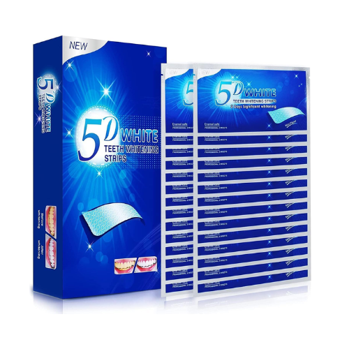 شرائط تبييض الأسنان 5D تساعد على إزالة التصبغات وتفتيح لون الأسنان بسهولة في المنزل، بنتائج ملحوظة ونفس منعش خلال 14 يوم.