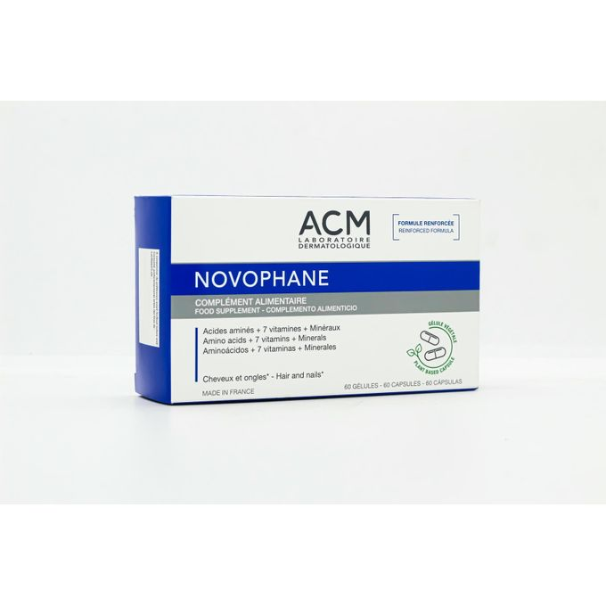 نوفوفان ACM Novophane 60 كبسولة مكمل غذائي لدعم الشعر وتقليل التساقط وتقوية الأظافر، يساعد على تحسين كثافة الشعر ودعم صحة الجلد.