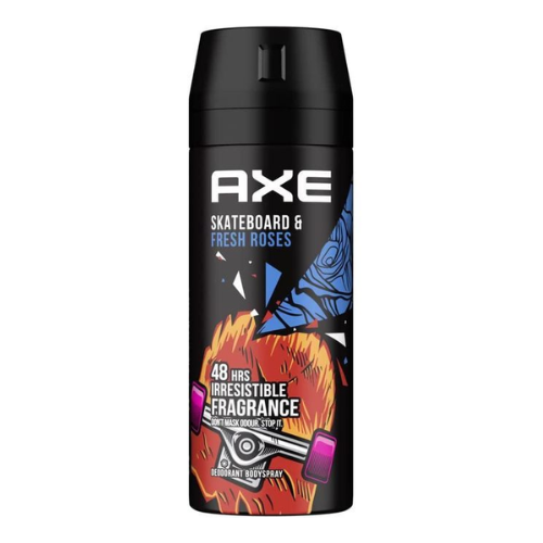سبراي Axe Skateboard & Fresh Roses يمنحك انتعاش يدوم حتى 48 ساعة برائحة الورد المنعشة مع حماية فعالة من الروائح الكريهة.