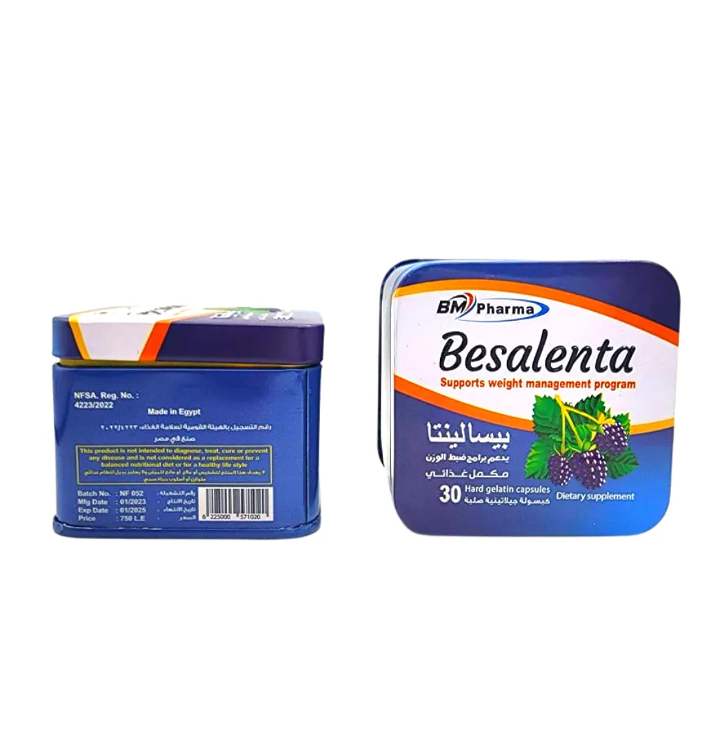 بيسالينتا كبسولات هو مكمل غذائي يحتوي على مزيج من مستخلصات الأعشاب والفاكهة الطبيعية مثل ألياف التفاح، المانجو الأفريقي، القهوة الخضراء، وجارسينيا كامبوجيا، ويُستخدم لدعم برامج إنقاص الوزن.