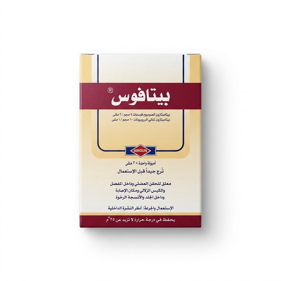 حقن Betafos هي دواء يحتوي على بيتاميثازون (Betamethasone)، وهو من الكورتيكوستيرويدات القوية التي تُستخدم لعلاج الحساسية والالتهابات الشديدة في الجسم.