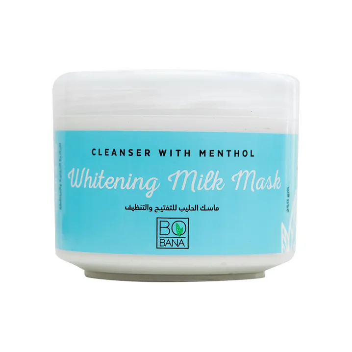 ماسك بوبانا بالحليب للتفتيح والتنظيف، يساعد على تنظيف البشرة بعمق وتوحيد لونها، يمنحها إشراقة ونعومة مع الاستخدام المنتظم. 250 جم.