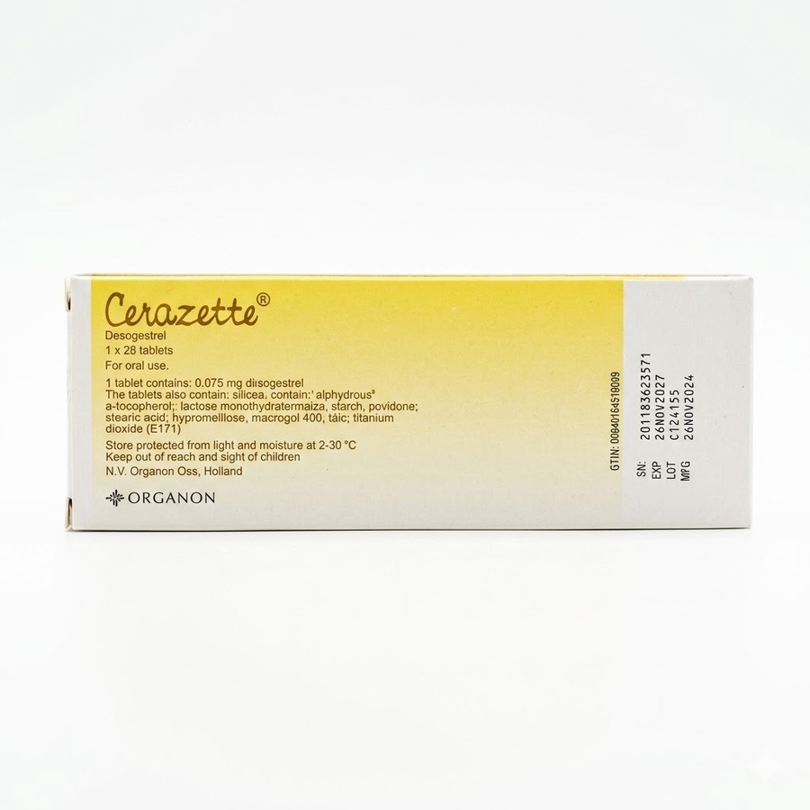 Cerazette هو أحد وسائل منع الحمل الفموية التي تحتوي على ديسوجيستريل (Desogestrel)، وهو هرمون بروجستيرون صناعي يعمل على منع الحمل بفعالية عالية.