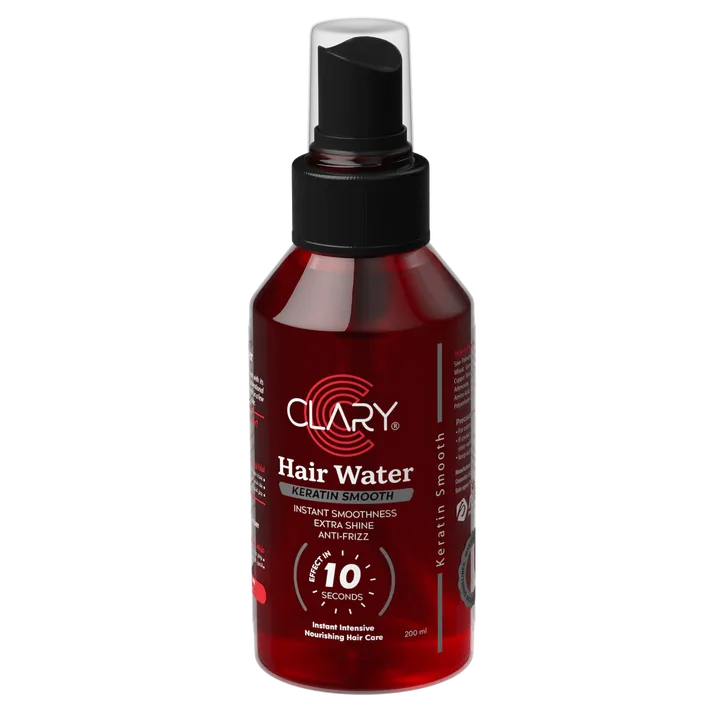 كلاري ماء الكيراتين (clary hair water) هو تركيبة جديدة مضادة لتجعد الشعر الناتج عن التعرض لأشعة الشمس والحرارة أو السباحة.