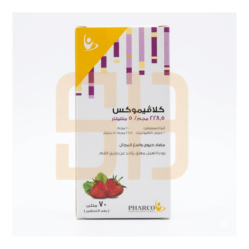 كلافيموكس شراب 228.5 مجم/5 مل مضاد حيوي واسع المدى للأطفال لعلاج العدوى البكتيرية مثل التهابات الجهاز التنفسي والأذن.