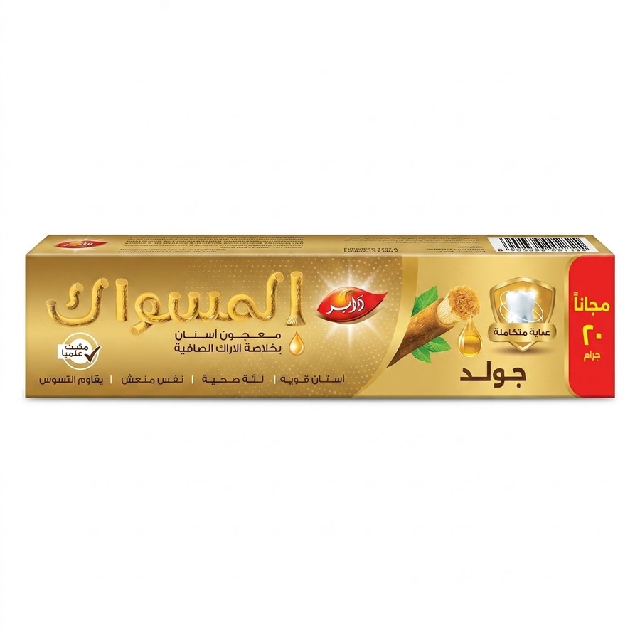 Dabur Miswak Gold Toothpaste هو معجون أسنان طبيعي متطور يعتمد على خلاصة الأراك (المسواك) المعروفة بخصائصها الفعالة في تنظيف الأسنان والعناية بالفم.