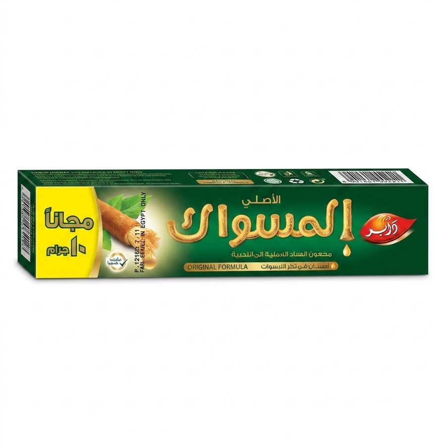 Dabur Miswak Herbal Toothpaste هو معجون أسنان طبيعي يعتمد على خلاصة المسواك (Salvadora persica)، المعروفة بفوائدها التقليدية في تنظيف الأسنان والعناية بصحة الفم.