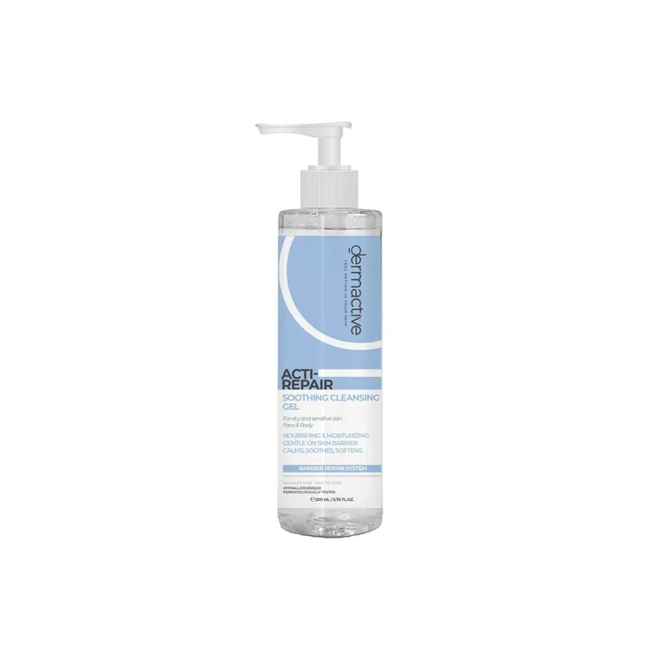 ديرما اكتيف | Derma Active أكتي ريبير جل التنظيف المهدئ ينظف البشرة بلطف، يهدئها ويقلل من التهيج، مناسب للبشرة الحساسة والمعرضة للجفاف.