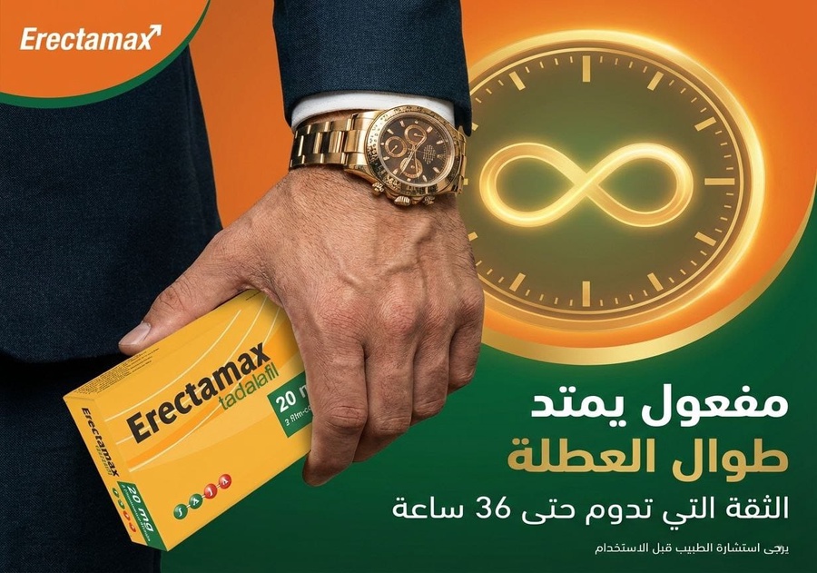اريكتاماكس Erectamax يقدم لك الحل الأمثل بمفعول طويل المدى بفضل مادة تادالافيل 20 مجم استعد لحياة جنسية أكثر ثقة ورضا بفضل فعالية تدوم حتى 36 ساعة