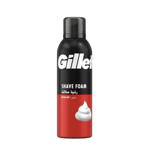 فوم حلاقة Gillette Regular يوفر رغوة كثيفة تساعد على حلاقة ناعمة، يقلل التهيج ويترك البشرة ناعمة ومنتعشة بعد كل استخدام.
