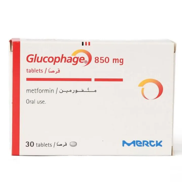 جلوكوفاج Glucophage ميتفورمين هيدروكلوريد 850 مجم 30 قرص يساعد على تنظيم سكر الدم لمرضى السكري من النوع الثاني مع نظام غذائي صحي ونشاط بدني.