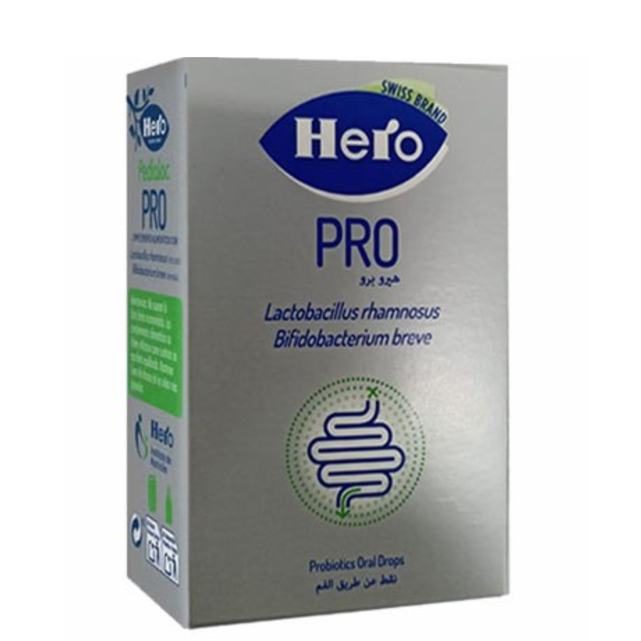Hero Pro Probiotic Drops هو مكمل غذائي يحتوي على مزيج من البكتيريا النافعة (البروبيوتيك) مثل Lactobacillus rhamnosus وBifidobacterium breve، والتي تساعد على دعم صحة الجهاز الهضمي وتحسين توازن البكتيريا المفيدة داخل الأمعاء.