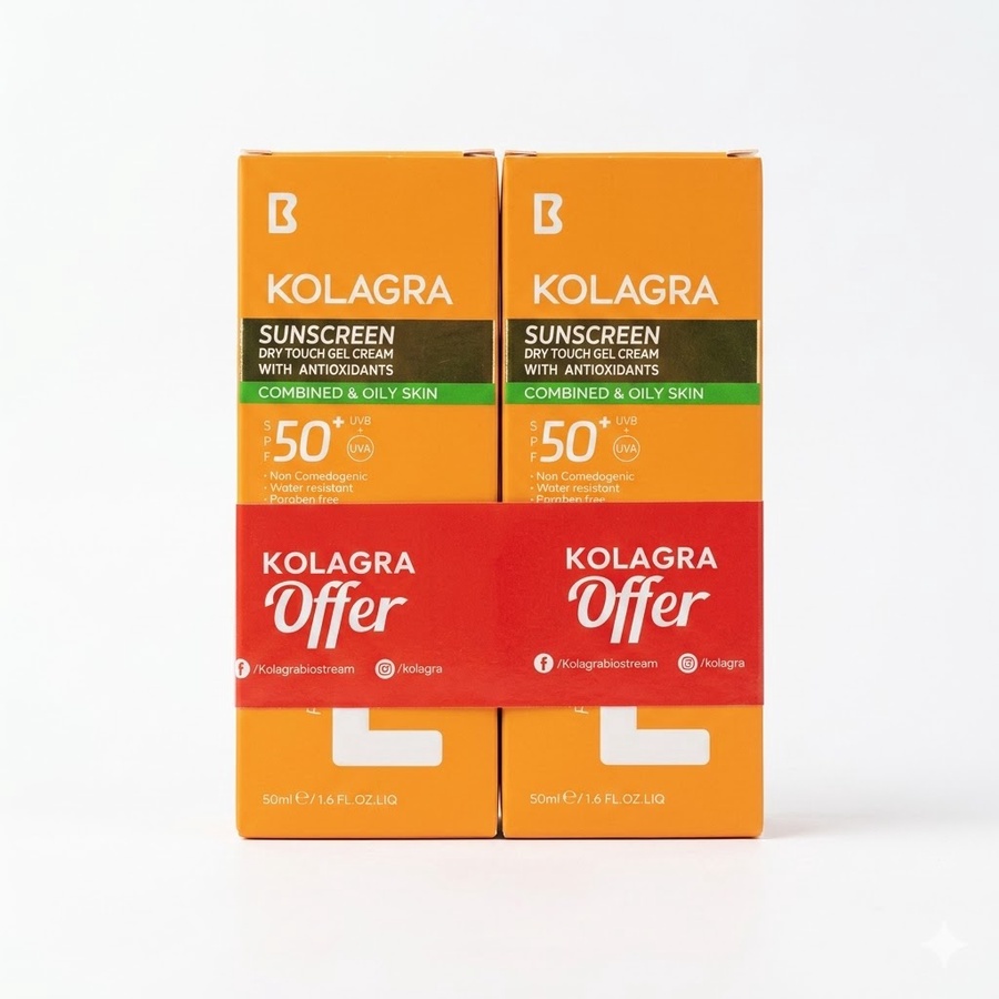 Kolagra Sunscreen Dry Touch Gel Cream SPF50+ هو واقي شمس متطور يوفر حماية عالية جدًا من أشعة الشمس الضارة (UVA/UVB)، مع تركيبة مبتكرة تجمع بين الفلاتر الفيزيائية والكيميائية للحصول على حماية متكاملة دون ترك أي أثر دهني أو لون أبيض على البشرة.