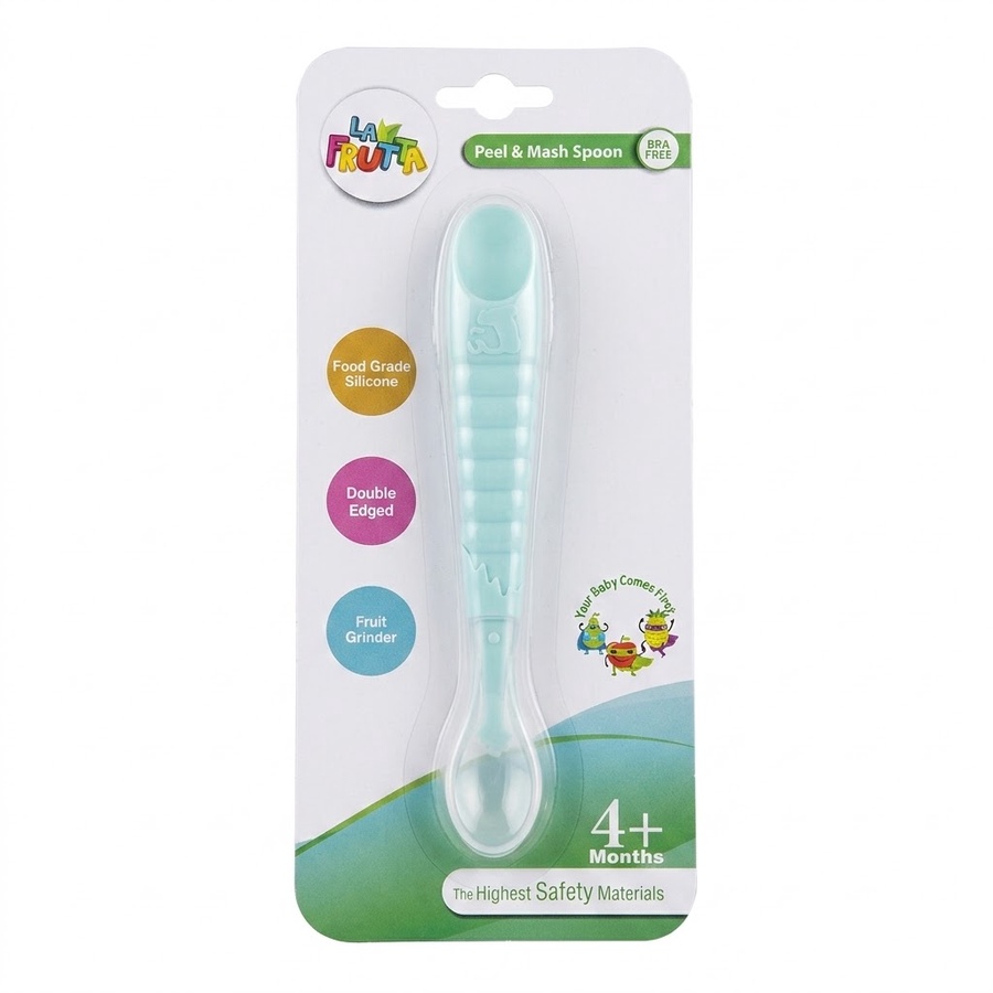 La Frutta Baby Silicone Spoon هي ملعقة مبتكرة للأطفال بتصميم مزدوج الوظيفة (Peel & Mash)، حيث تساعدك على هرس الطعام وتقديمه بسهولة في نفس الوقت، مما يجعلها مثالية لمرحلة إدخال الطعام الصلب للرضع.