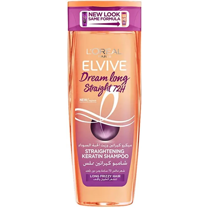 شامبو لوريال باريس إلفيف دريم طويل مستقيم لتنظيف وتنعيم الشعر الطويل، يساعد على تقليل الهيشان ومنح الشعر انسيابية ولمعانًا.