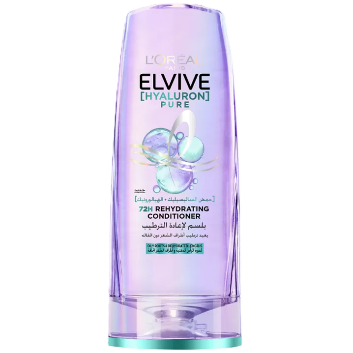 بلسم لوريال باريس إلفيف هيالورون بيور مصمم خصيصًا لإعادة ترطيب الشعر الدهني دون التسبب في زيادة الزيوت أو إثقال الشعر. تحتوي تركيبته على حمض الهيالورونيك الذي يساعد على دعم ترطيب أطراف الشعر مع الحفاظ على خفة الجذور.
