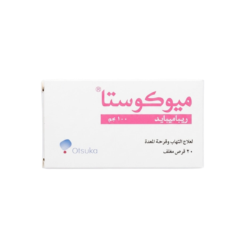 ميوكوستا 100 مجم يحتوي على ريباميبيد لعلاج التهابات وقرح المعدة، يساعد على حماية الغشاء المخاطي وتحسين صحة الجهاز الهضمي.