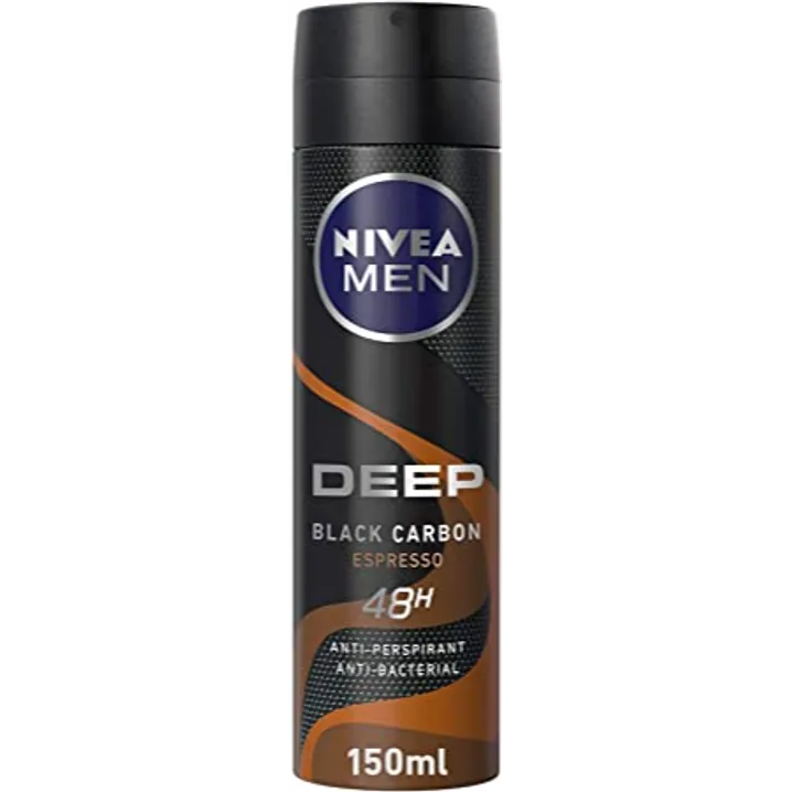 نيفيا مزيل عرق سبراي للرجال ديب بلاك كاربون الأسود والإسبريسو يوفر حماية موثوقة من الروائح غير المرغوب فيها مع إحساس بالانتعاش والجفاف طوال اليوم.