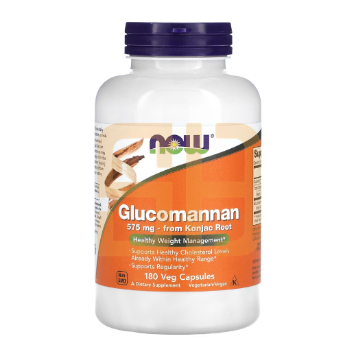 NOW Foods Glucomannan 575 mg هو مكمل غذائي غني بالألياف الطبيعية المستخلصة من جذر الكونجاك (Konjac Root)، ويُستخدم لدعم فقدان الوزن وصحة الجهاز الهضمي.