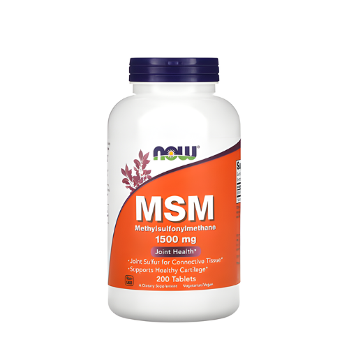 NOW Foods MSM 1,500 mg هو مكمل غذائي يحتوي على Methylsulfonylmethane، وهو مركب كبريتي طبيعي يساهم في دعم صحة المفاصل والأنسجة الضامة مثل الغضاريف والجلد.