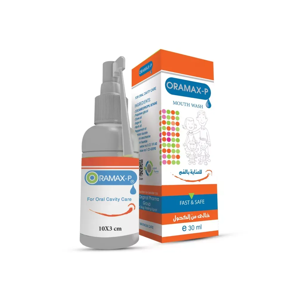 أوراماكس P بخاخ مطهر للفم 30 مل هو مطهر فموي فعال يُستخدم لدعم صحة الفم والحلق وتخفيف الألم المصاحب للالتهابات الفموية والتهابات الحلق.