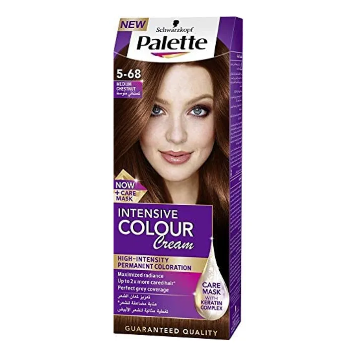 كريم صبغة الشعر Palette إنتنسيف كولور 5-68 كستنائي متوسط يمنح لونًا دافئًا غنيًا مع تغطية فعالة للشيب ولمعان يدوم.