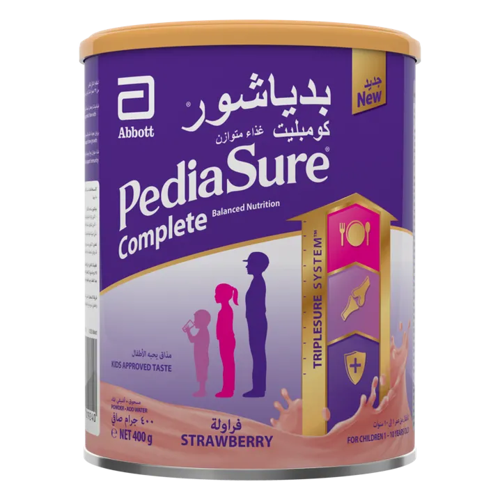 بدياشور | Pediasure مكمل غذائي بنكهة الفراولة الطازجة يوفر العناصر الغذائية الأساسية لدعم نمو الأطفال وتطورهم الصحي.