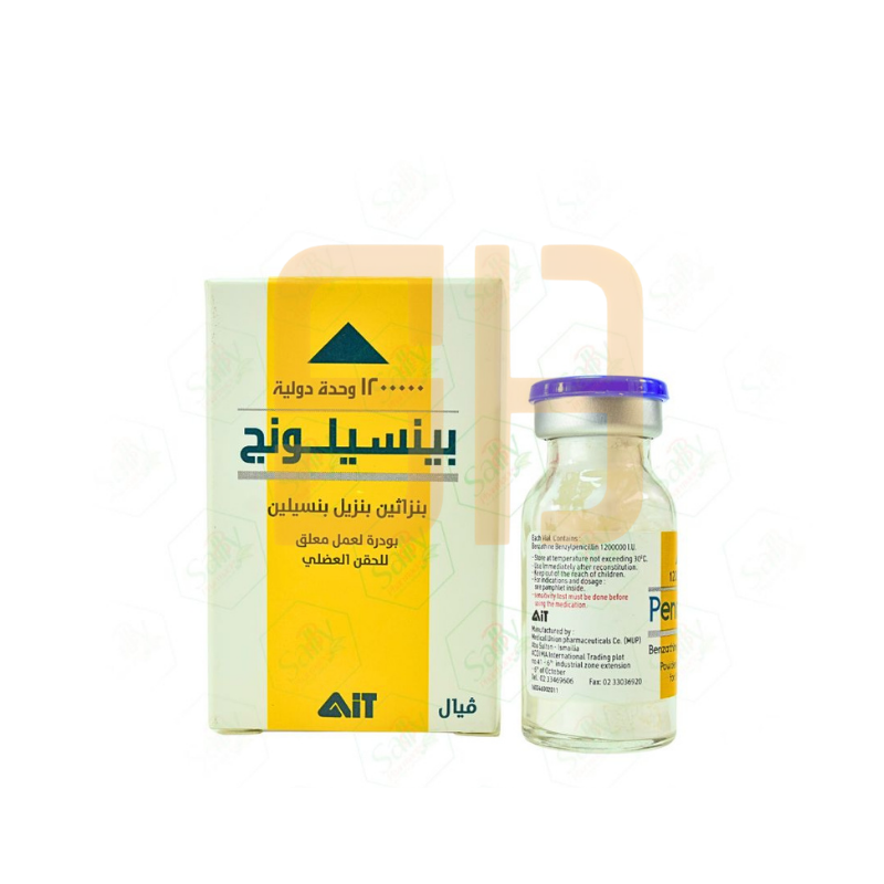 بنسيلونج 1.2 مليون وحدة حقن عضلي يحتوي على بنزاثين بنسلين G، مضاد حيوي طويل المفعول لعلاج العدوى البكتيرية والوقاية من الحمى الروماتيزمية.