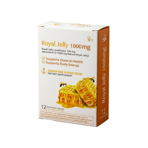 Royal Jelly 1000 mg هو مكمل غذائي غني بالمغذيات الطبيعية المستخلصة من غذاء ملكات النحل، يُستخدم لدعم مستويات الطاقة، تقليل التعب، وتعزيز المناعة.