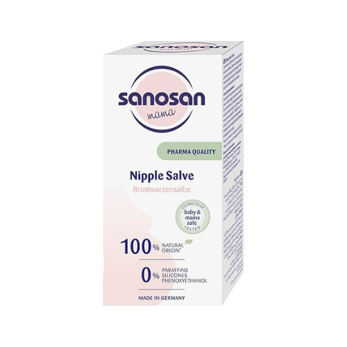 Sanosan Mama Nipple Salve Cream هو كريم مخصص للعناية بالحلمات أثناء الحمل والرضاعة، مصمم لتهدئة التشققات والجفاف والحساسية الناتجة عن الرضاعة الطبيعية. يحتوي على لانولين طبي نقي 100% يساعد على ترطيب البشرة بعمق واستعادة توازنها الطبيعي.