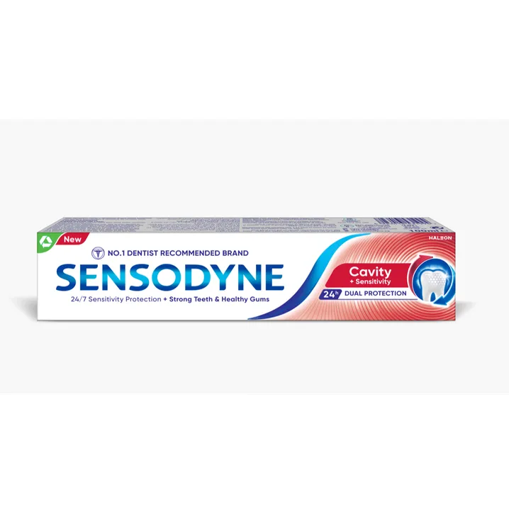معجون أسنان Sensodyne للتسوس والحساسية يساعد على تخفيف حساسية الأسنان، تقوية المينا، والحماية من التسوس مع تنظيف يومي لطيف.