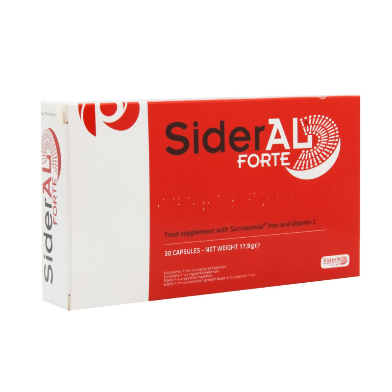 Sideral Fort 30 Capsules هو مكمل غذائي متطور مصمم لتعويض نقص الحديد وعلاج الأنيميا الناتجة عن نقصه. تحتوي كل كبسولة على حديد 30 مجم وفيتامين C 70 مجم لتعزيز امتصاص الحديد وتحسين تكوين خلايا الدم الحمراء.