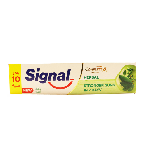 Signal Complete 8 Herbal Gum Care Toothpaste هو معجون أسنان متكامل مصمم لتوفير حماية شاملة للفم والأسنان مع تركيز خاص على صحة اللثة.