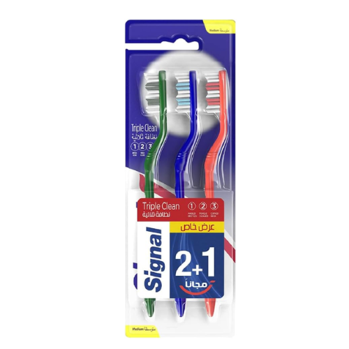 فرشاة Signal Triple Clean متوسطة توفر تنظيفًا فعالًا للأسنان، تساعد على إزالة البلاك وحماية الأسنان من التسوس مع تجربة تنظيف مريحة يوميًا.