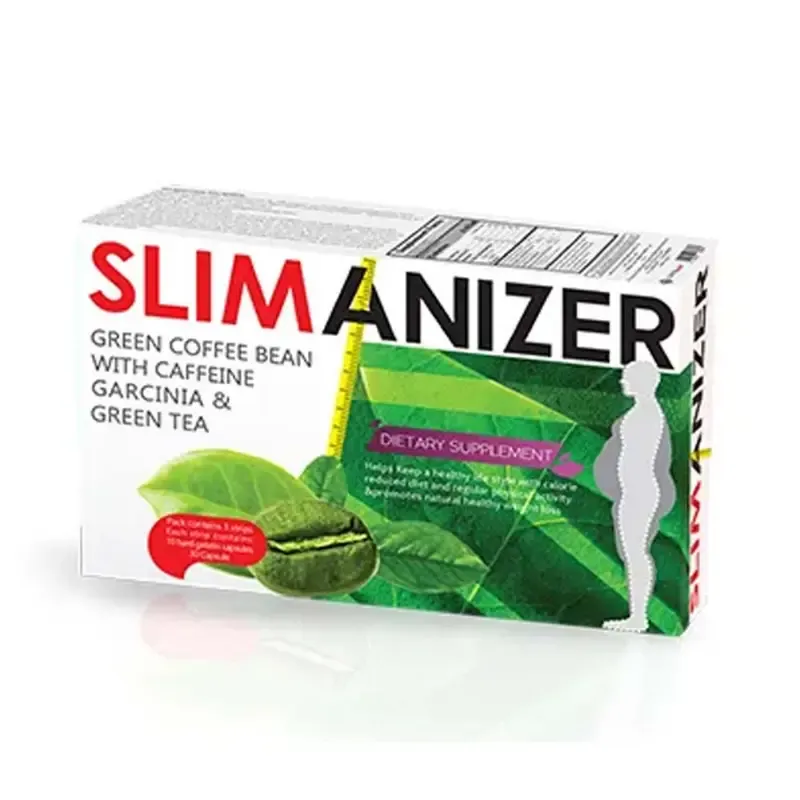 سليمانايزر 30 كبسولة مكمل غذائي لدعم إنقاص الوزن، يحتوي على مستخلص القهوة الخضراء والكافيين وجارسينيا كامبوجيا والشاي الأخضر.