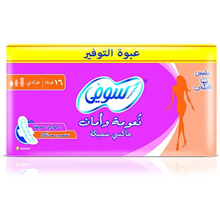 فوط صحية سوفي ماكسي مقاس عادي 23 سم، توفر امتصاصًا موثوقًا وحماية مريحة للاستخدام اليومي أثناء الدورة الشهرية.