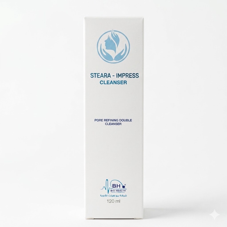 Steara Impress Cleanser هو غسول متطور بتقنية Double Cleanser مصمم لتنظيف البشرة بعمق وإزالة الشوائب والمكياج والزيوت الزائدة، مما يساعد على تنقية المسام ومنح البشرة مظهرًا صحيًا ونقيًا.