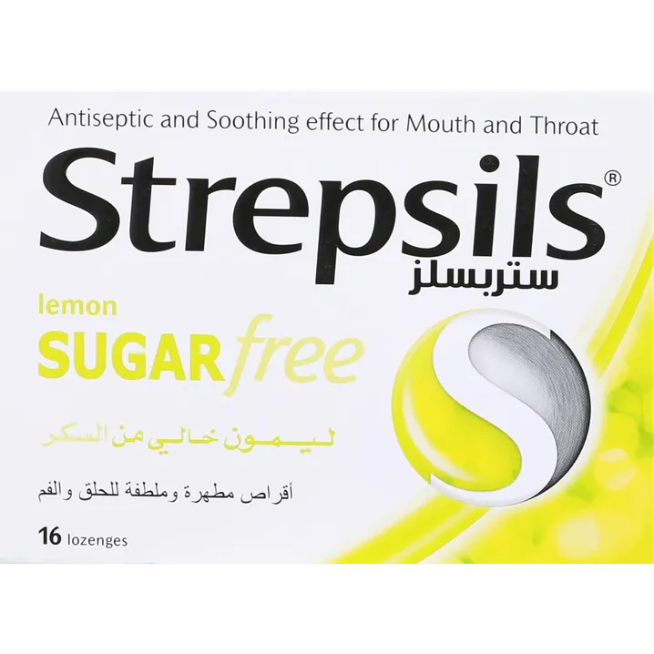 ستربسلز ليمون خالي من السكر أقراص استحلاب مصممة للمساعدة على تهدئة التهاب الحلق وتخفيف الشعور بالألم والانزعاج، مع تركيبة مناسبة لمن يفضلون المنتجات الخالية من السكر.