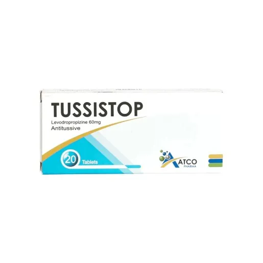 Tussistop 60 mg هو دواء مهدئ للسعال (Antitussive) يحتوي على المادة الفعالة Levodropropizine، ويُستخدم لعلاج الكحة الجافة والشديدة، بما في ذلك الكحة المصحوبة بأزيز أو الكحة التي تمنع النوم أو تسبب آلام الصدر.