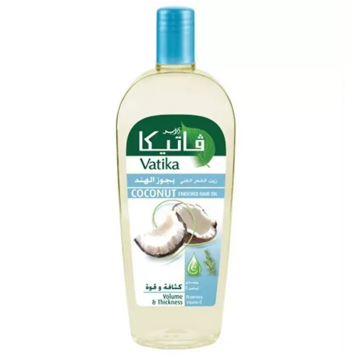 فاتيكا | Vatika زيت شعر بجوز الهند من دابر أملا يغذي الشعر بعمق، يعزز من صحته ويمنحه لمعانًا طبيعيًا، مثالي لترطيب الشعر وحمايته.