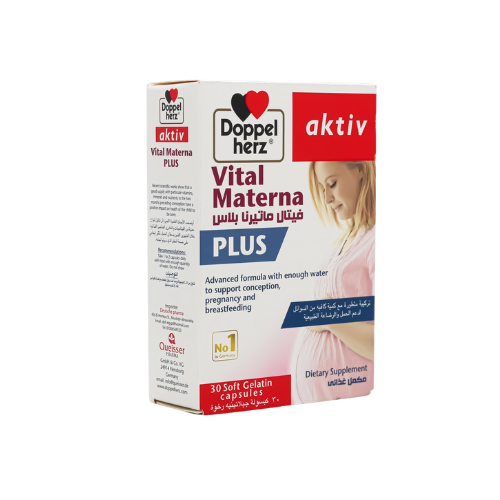 كبسولات Vital Materna Plus من Doppelherz تحتوي على فيتامينات وأوميجا 3 لدعم صحة المرأة قبل وأثناء الحمل والرضاعة وتعزيز صحة الأم والجنين.