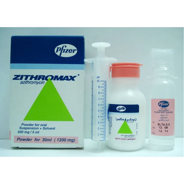 زيثروماكس Zithromax 200 مجم/5 مل شراب معلق 30 مل مضاد حيوي لعلاج العدوى البكتيرية لدى الأطفال مثل التهابات الحلق والأذن والصدر حسب وصف الطبيب.