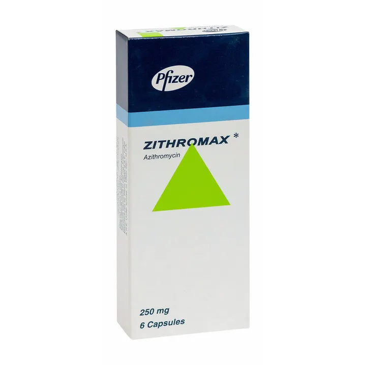 زيثروماكس Zithromax 250 مجم 6 كبسولات مضاد حيوي لعلاج العدوى البكتيرية مثل التهابات الحلق والجيوب والصدر وبعض التهابات الجلد، ويُستخدم بوصفة طبية.